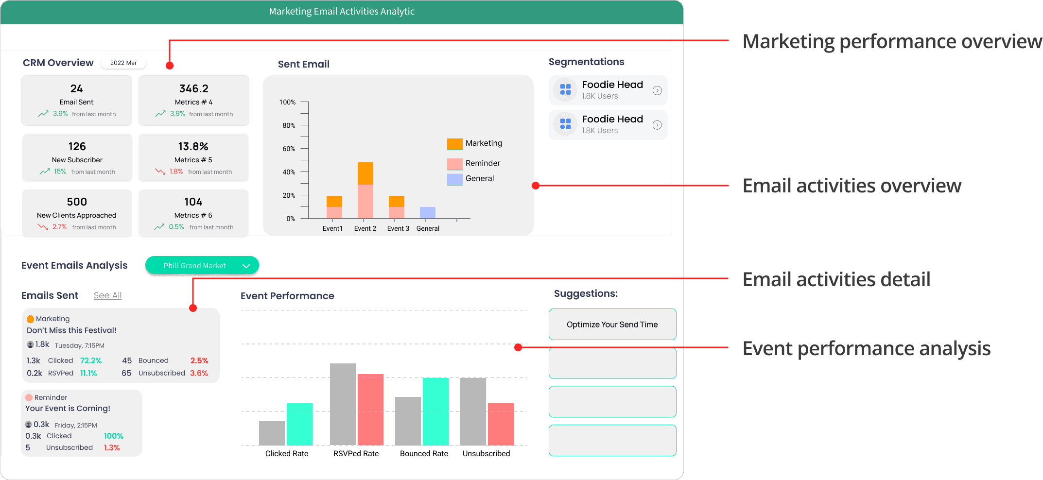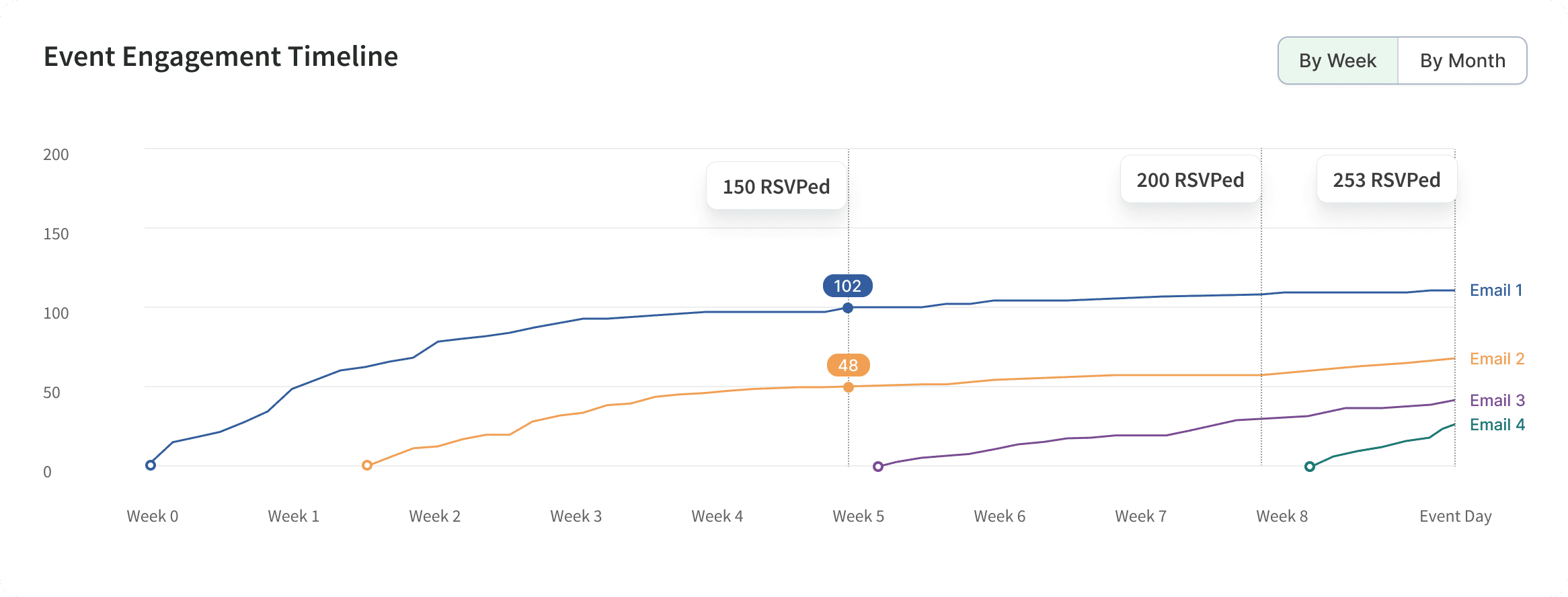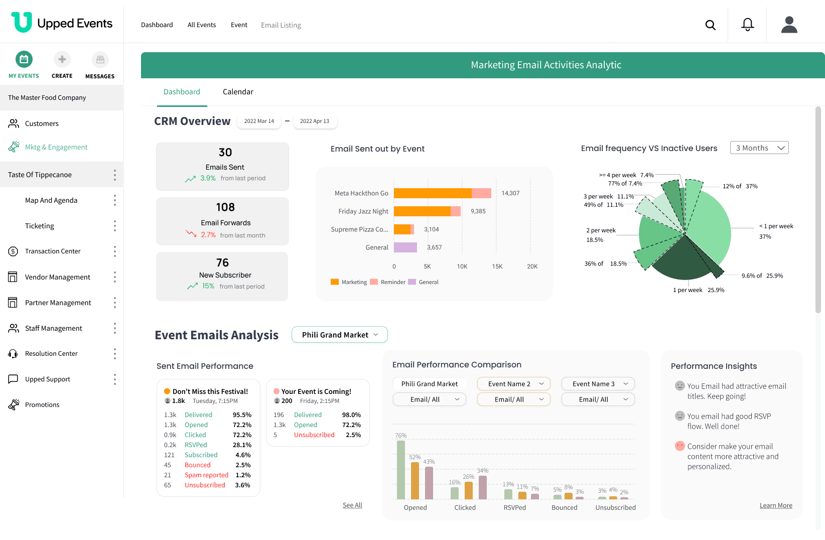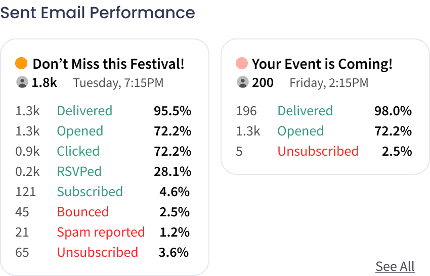 Build an integrated analytics dashboard that provides users with intuitive email marketing insights for their events.