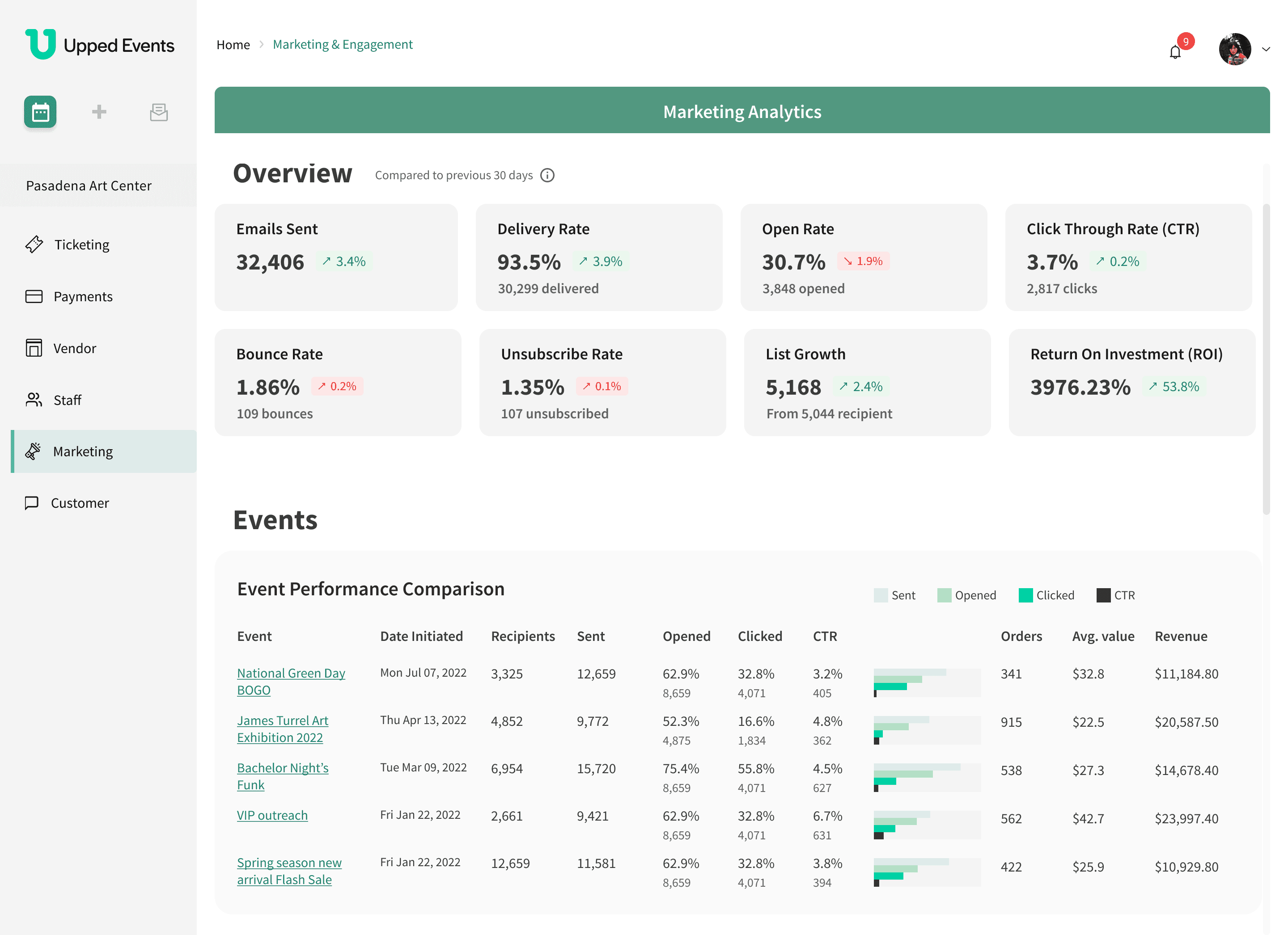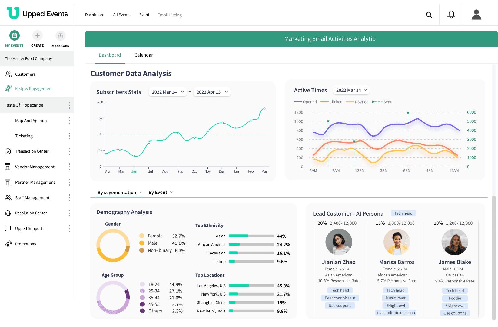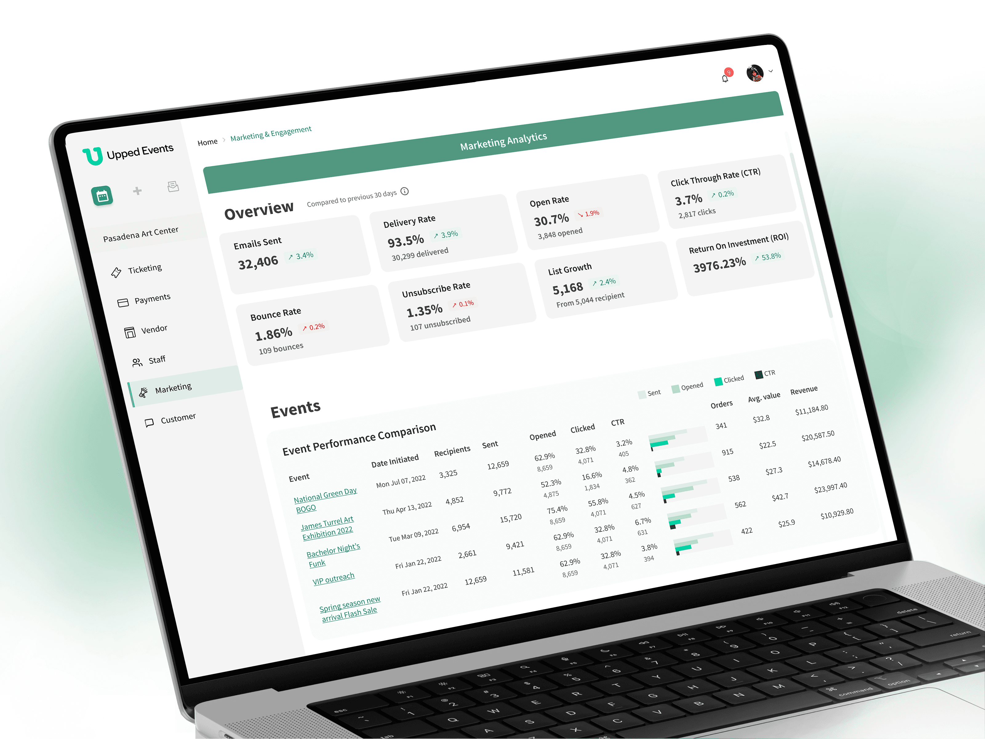 Build an integrated analytics dashboard that provides users with intuitive email marketing insights for their events.