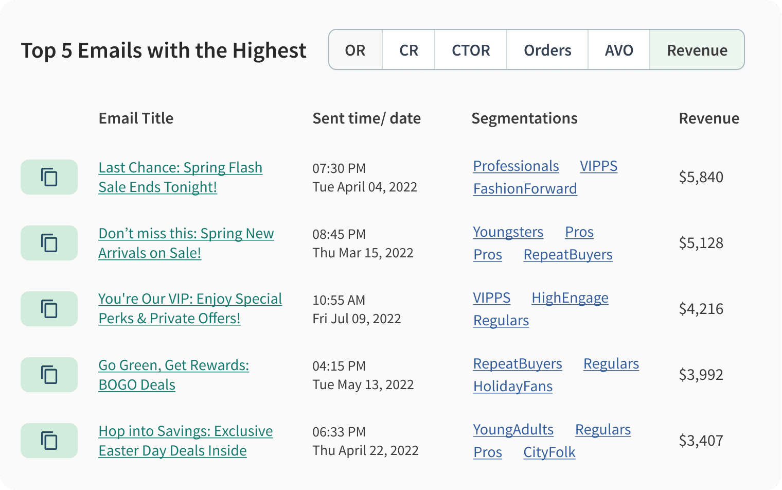 ✓ Present top-performed emails